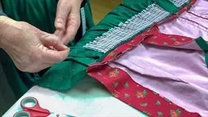Schürzenblatt in Falten legen und Schürzenband Länge anpassen